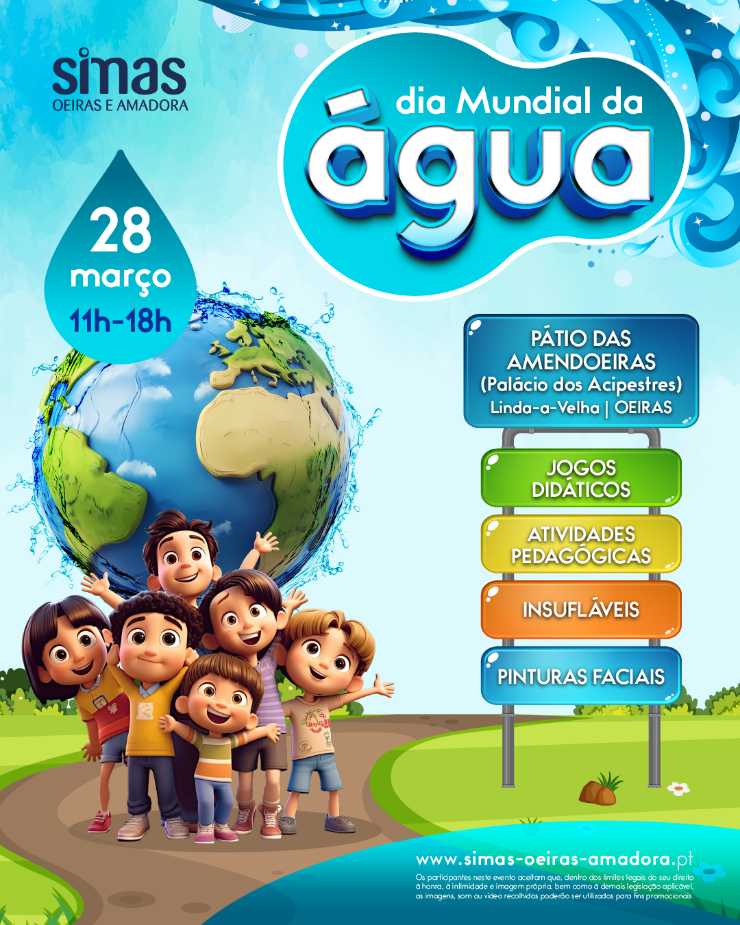 No próximo dia 28 de março, os Serviços Intermunicipalizados de Água e Saneamento (SIMAS) de Oeiras e Amadora celebram o Dia Mundial da Água (que se assinala a 22 de março), com um evento com diversas atividades para as famílias, no Palácio dos Aciprestes, em Linda-a-Velha, Oeiras, promovendo a sensibilização ambiental num ambiente lúdico e cultural.